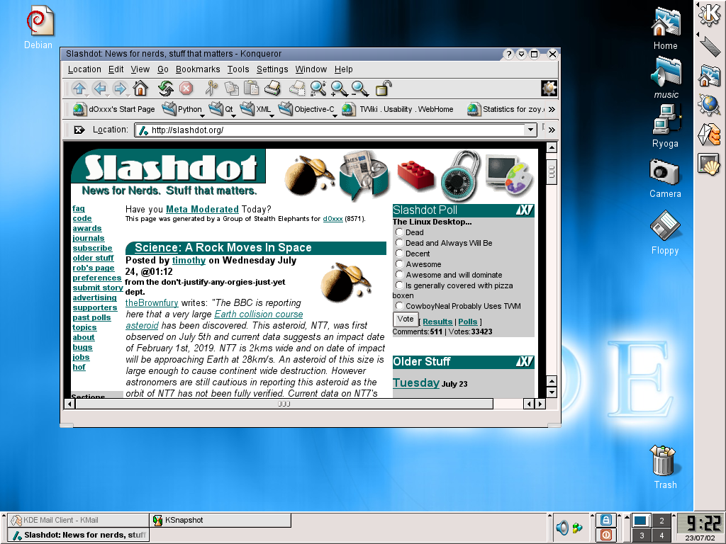 Actual screenshot by wvl, KEdit icon represents KOffice popup menu